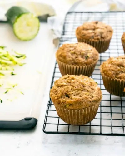 Te babeczki z cukinią to naprawdę jeden z najlepszych sposobów wykorzystania tego zielonego warzywa! Te babeczki mają trochę zdrowego akcentu: zamiast być obciążone cukrem i olejem, są zwilżone jogurtem greckim i słodzone odpowiednią ilością cukru turbinado. Duże ziarna cukru dodają również smacznej chrupkości na wierzchu muffinów! Gotowy do pieczenia?