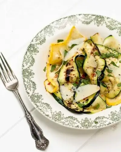 Oto pomysłowy przepis na cukinię i dynię: sałatka wstążkowa! Cukinię i dynię pokroić w długie i cienkie wstążki. Następnie polej je prostym winegretem! Dzięki smakom czosnku, parmezanu i świeżej bazylii jest wyjątkowy i w pełni letni.