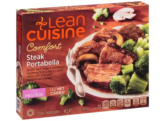 To jedzenie ma prawie tyle samo składników, co kalorie! (Policzyliśmy co najmniej 80.) Może wyglądać jak jedzenie, ale tylko dostajesz kilka kawałków steków, brokułów i „smaku wina Madeira” i „Smak brązowego sosu”. Wędźnia.