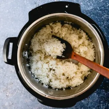 Szukasz łatwego sposobu na ugotowanie ryżu? Jeśli masz szybkowar, jest to również urządzenie do gotowania ryżu. Spróbuj tego Ryż basmati Instant Pot ! Jest to metoda bez użycia rąk, która pozwala uzyskać puszysty, doskonale ugotowany ryż w nieco ponad 20 minut. Bez gumowatego ryżu, bez ryzyka przegotowania lub niedogotowania: jest idealny za każdym razem! Alex i ja uwielbiamy używać szybkowaru do ryżu, ponieważ w zasadzie ustawiasz go i zapominasz. Dzięki temu kuchenka – i nasze mózgi – są otwarte na przygotowanie głównej części posiłku.