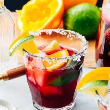 Sangria Margarita łączy czerwone wino z tequilą i sokiem z limonki, aby w pełni wykorzystać oba napoje! To zabawna mieszanka koktajlowa.